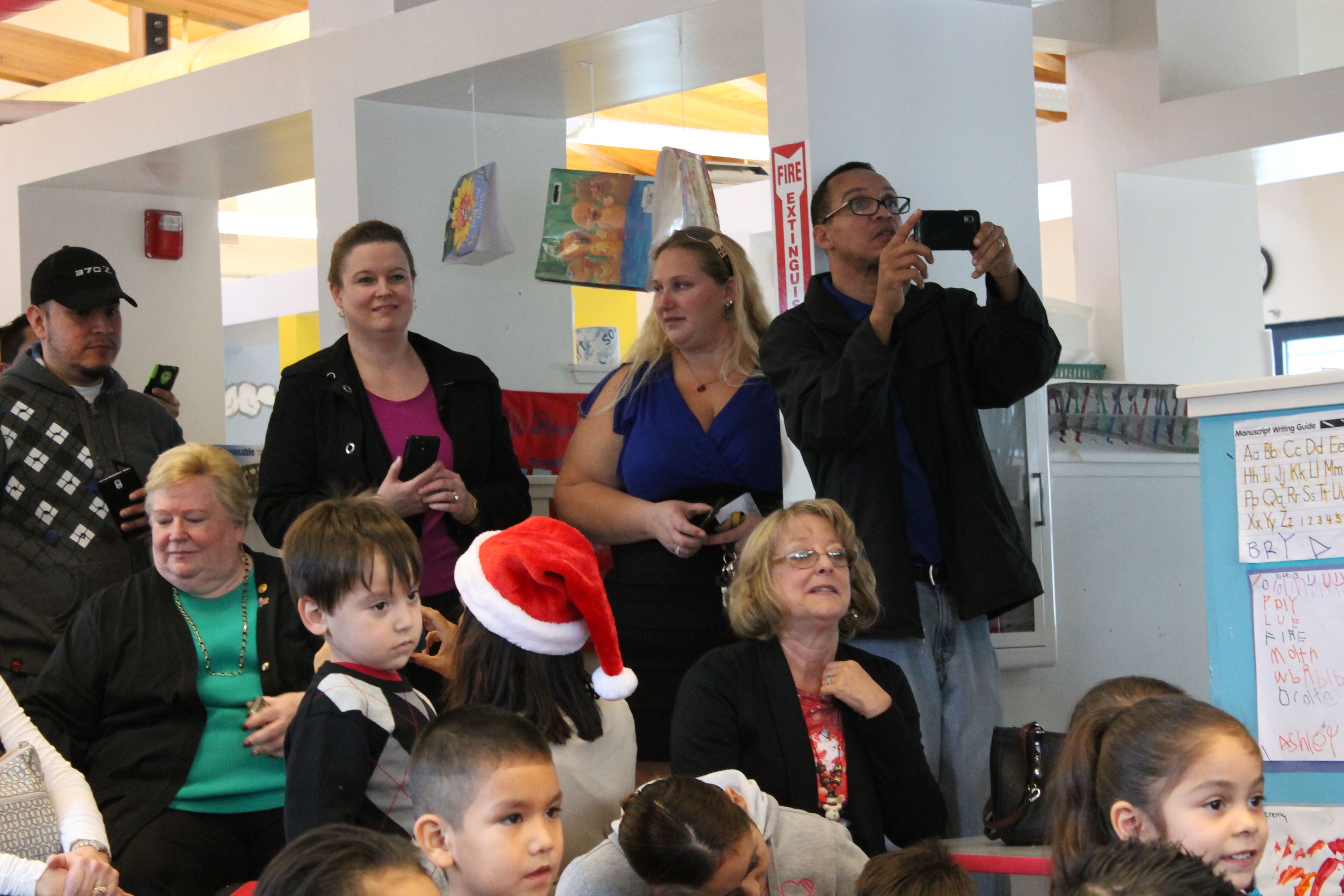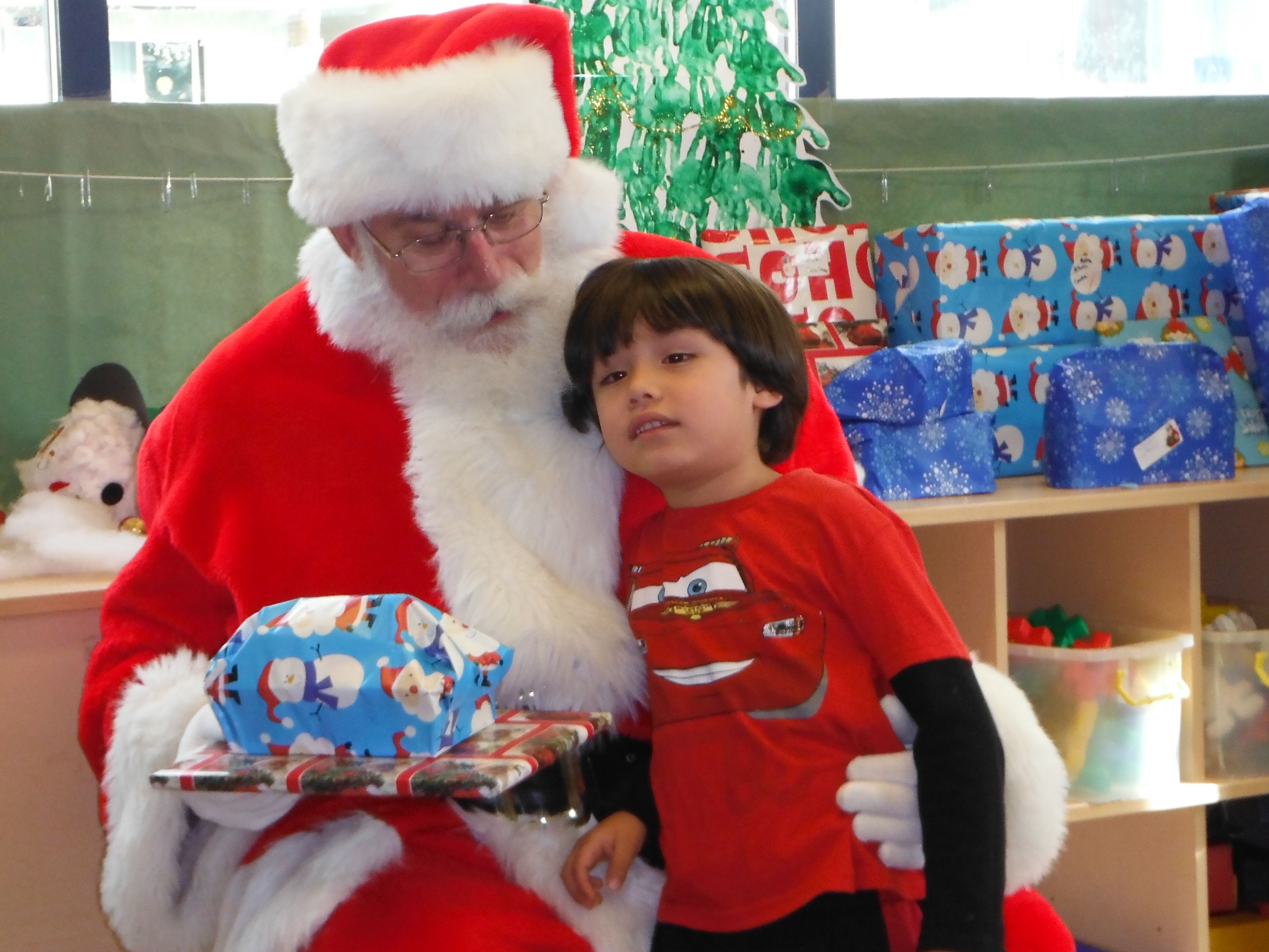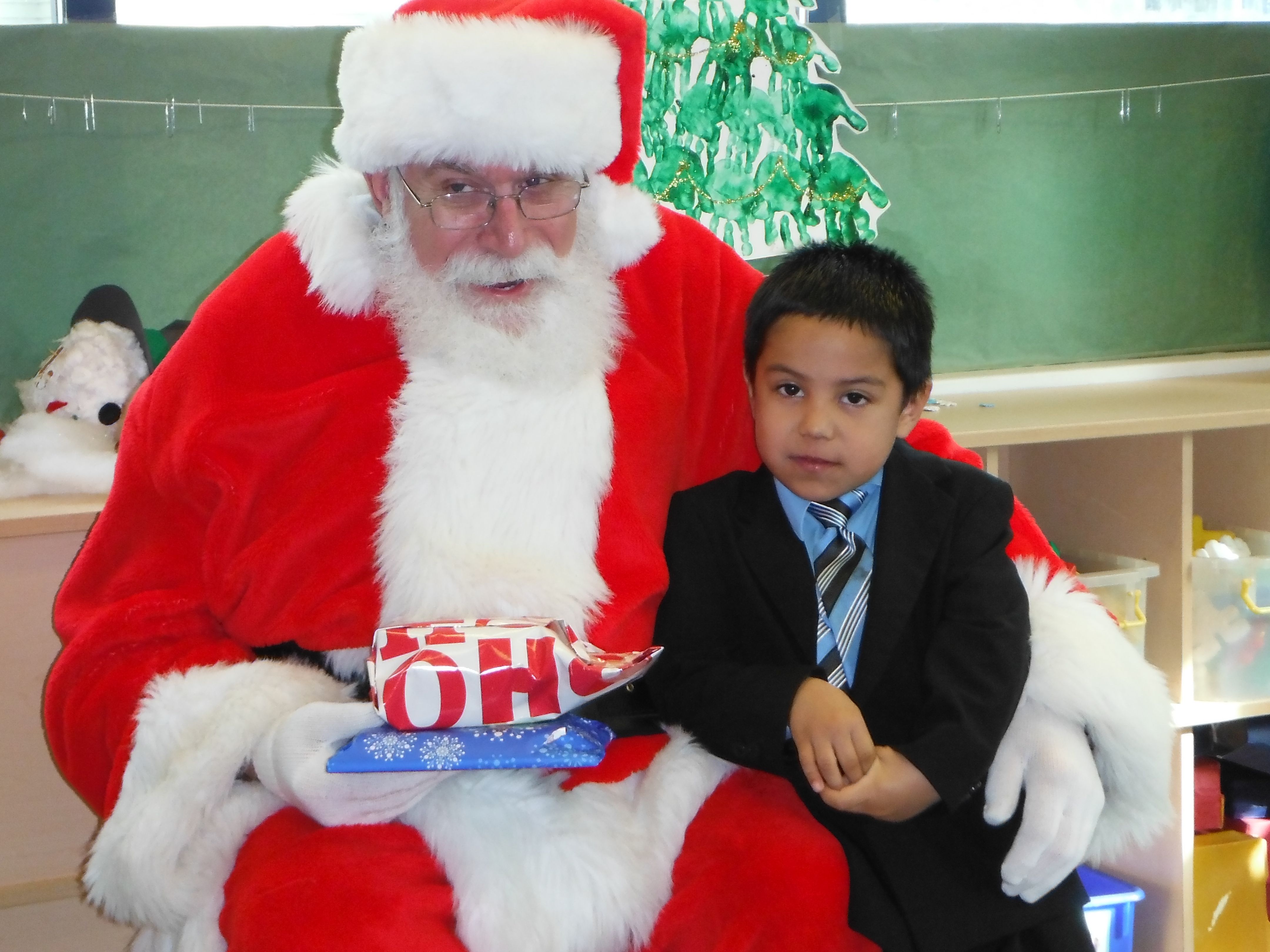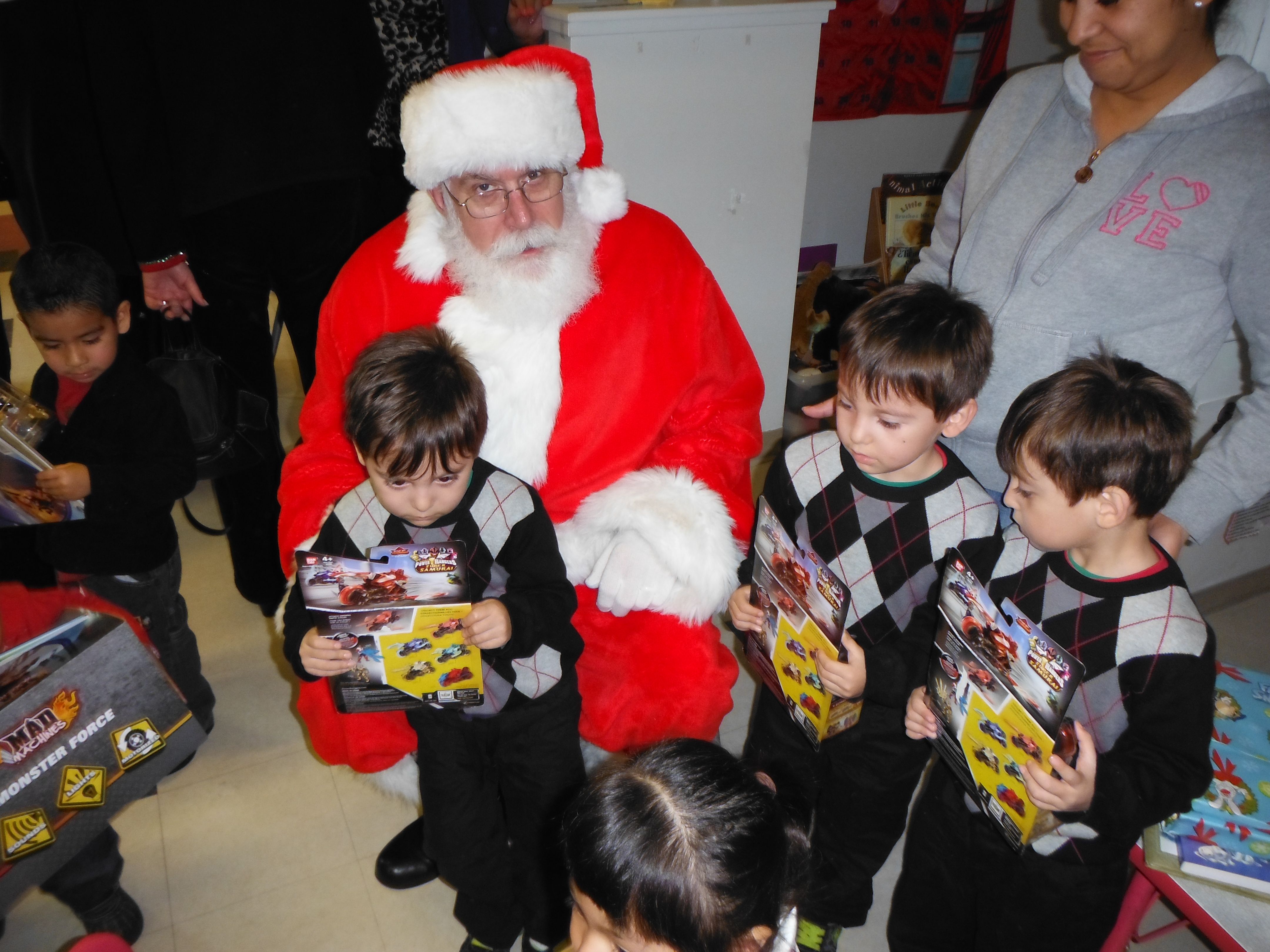 Next, it was off to give the gifts away. You would not believe how well-behaved 3-4 year olds can be when Santa is in the house! After the gift exchange, it was back to the secret room for a delicious lunch! As is tradition, we donated the money we would normally pay the hotel to Cambridge.
