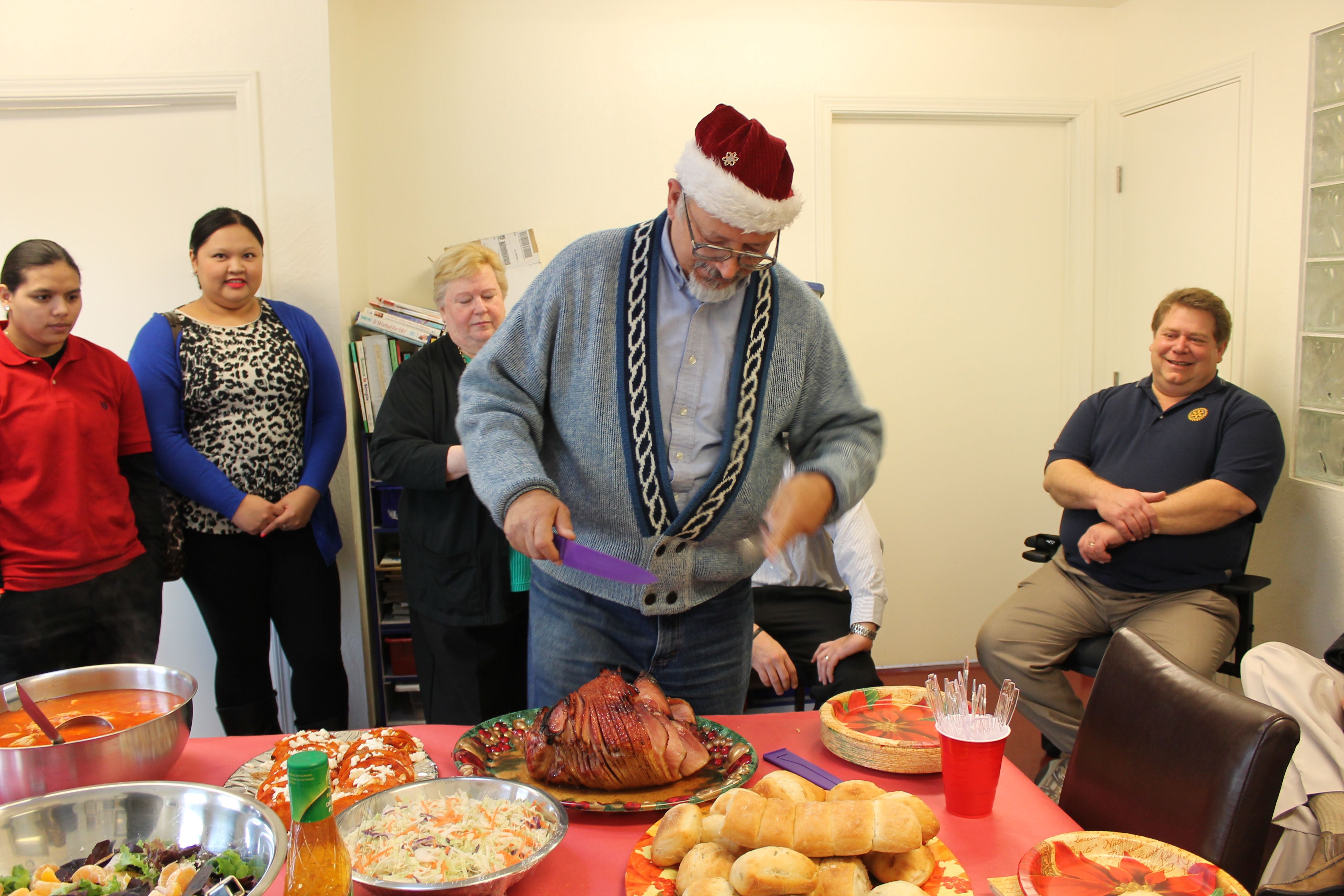 The day started off meeting in secret with Santa (THANK YOU Jim Williams!) where President Eric shared his secret wishes for his Christmas List. (We’re not sure exactly what Santa said, but it looked like Santa gave him a super-sized bag of Kingsford Charcoal?)