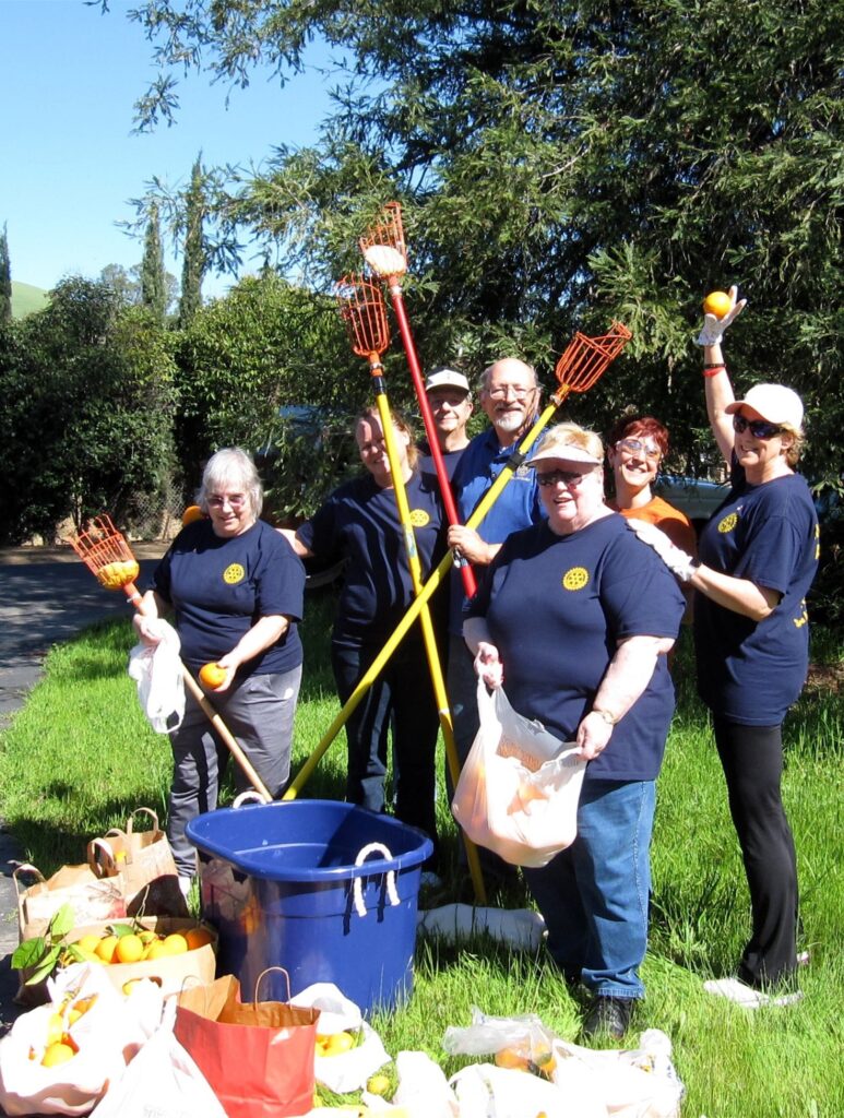 The Rotary Club of Concord-Diablo obtains property owner permissions to pick, or glean, excess fruit and then deposits the harvest with local food bank distribution organizations.